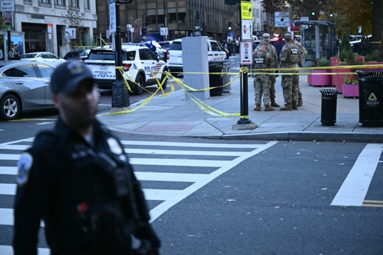Two US National Guard soldiers were shot and critically wounded Wednesday two blocks from the White House and police said a suspect had been taken into custody.