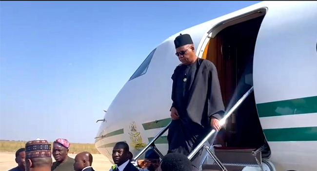 Also on hand to welcome the President were Speaker of the House of Representatives, Tajudeen Abbas; Deputy Senate President, Barau Jibrin; Chief of Staff to the President, Femi Gbajabiamila; National Security Adviser, Nuhu Ribadu; and some Ministers, including Nyesom Wike (FCT); Abubakar Atiku Bagudu (Budget and Economic Planning) and Bello Matawalle (Defence, State).